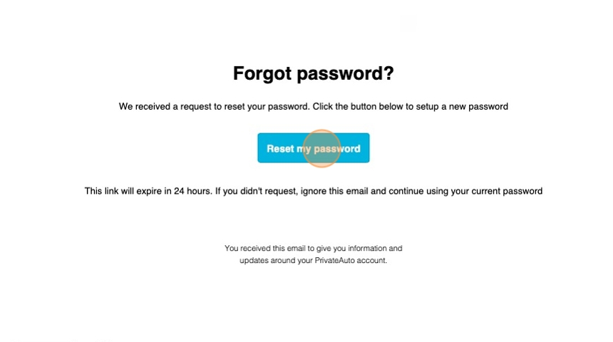 3. Go to your email and open the email from support@privateauto.com titled "Reset your PrivateAuto account password" and click the Reset my password button