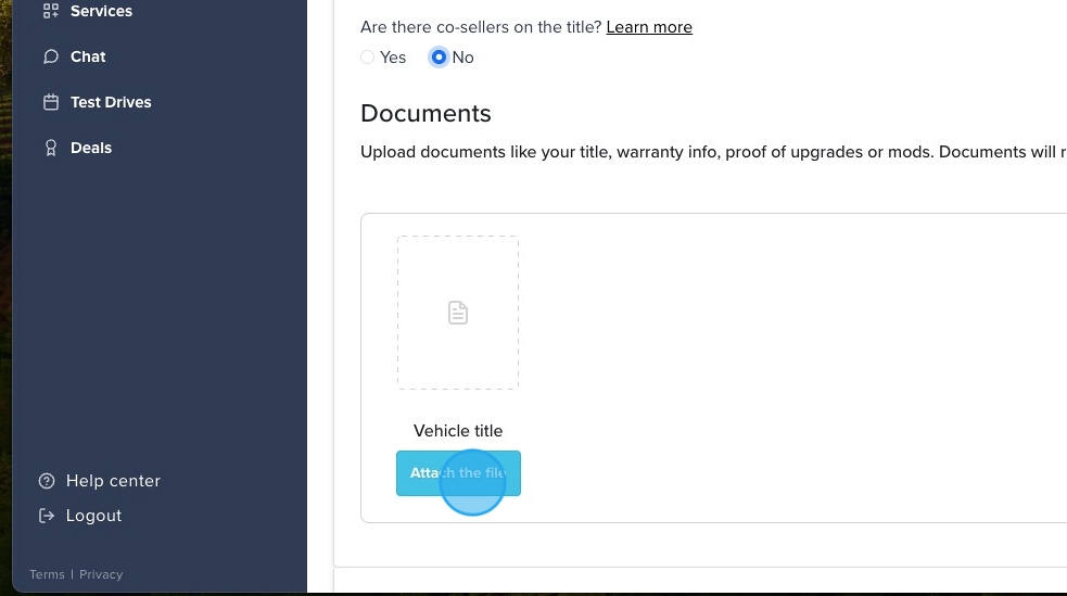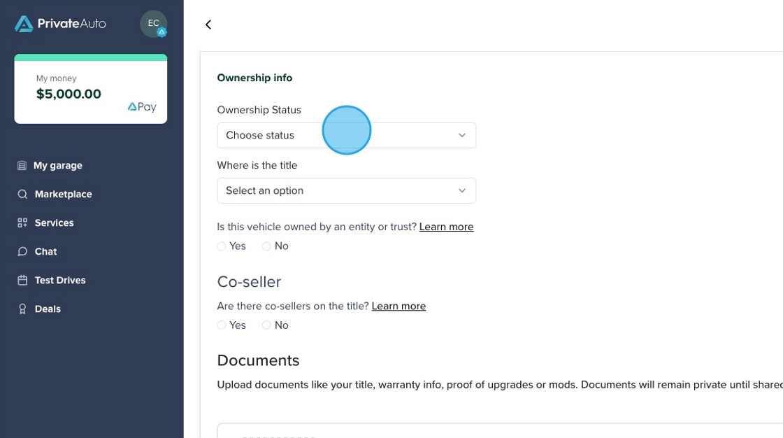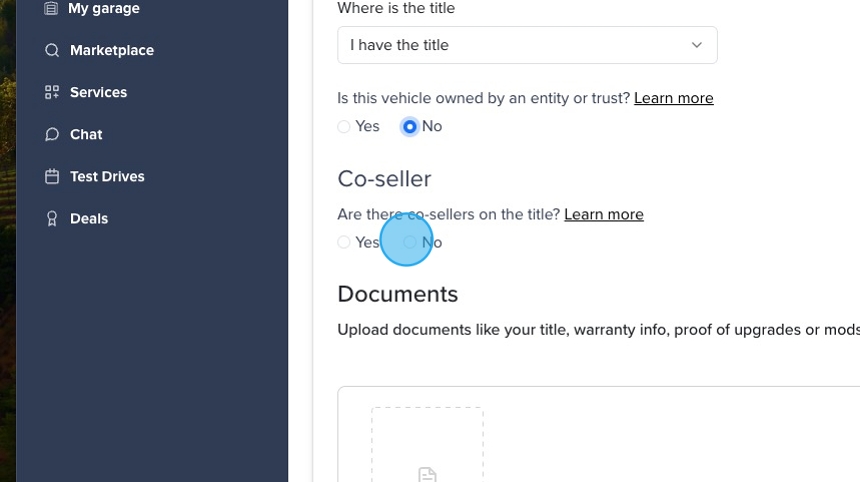 25. The documents section is a great place to upload your title or other supporting documents you may want to share with a potential buyer. Nothing will be shared with anyone here unless you specifically choose to share it with a potential buyer.