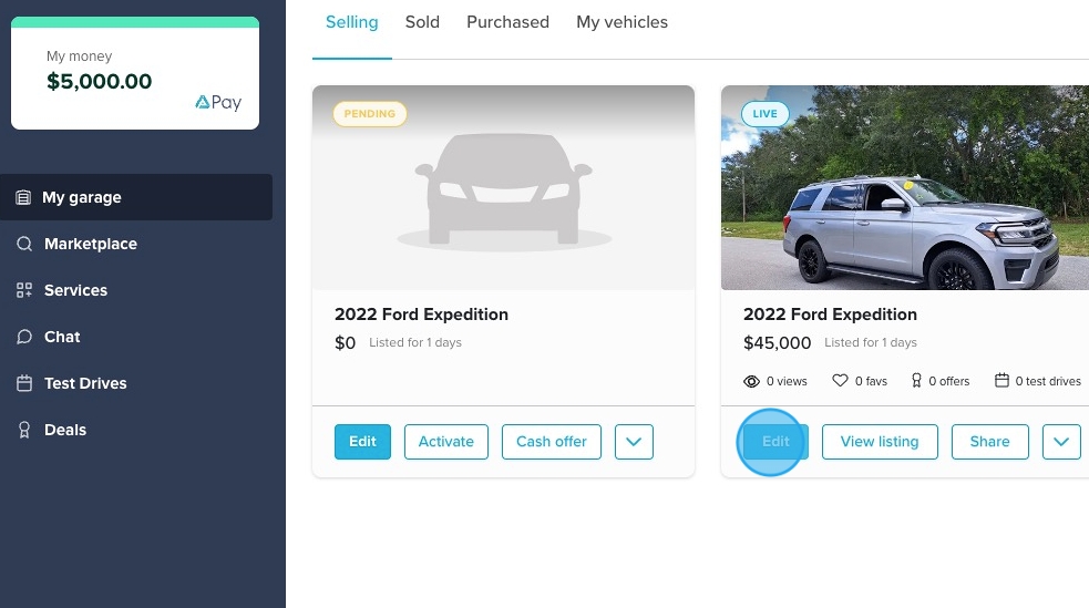 16. To edit your listing or complete the additional optional steps you can click on this edit button in 'my garage.'