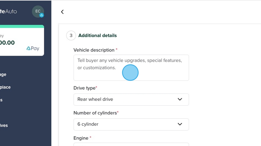 13. The last required step to activating a listing is the additional details section. Be sure to fill in all fields and a good vehicle description.