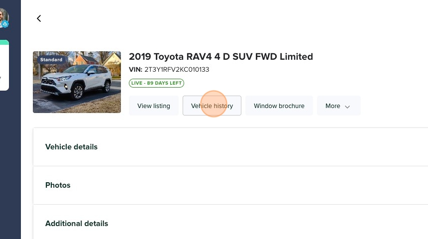 - Scroll down under the "Description" section and press on "Vehicle History."