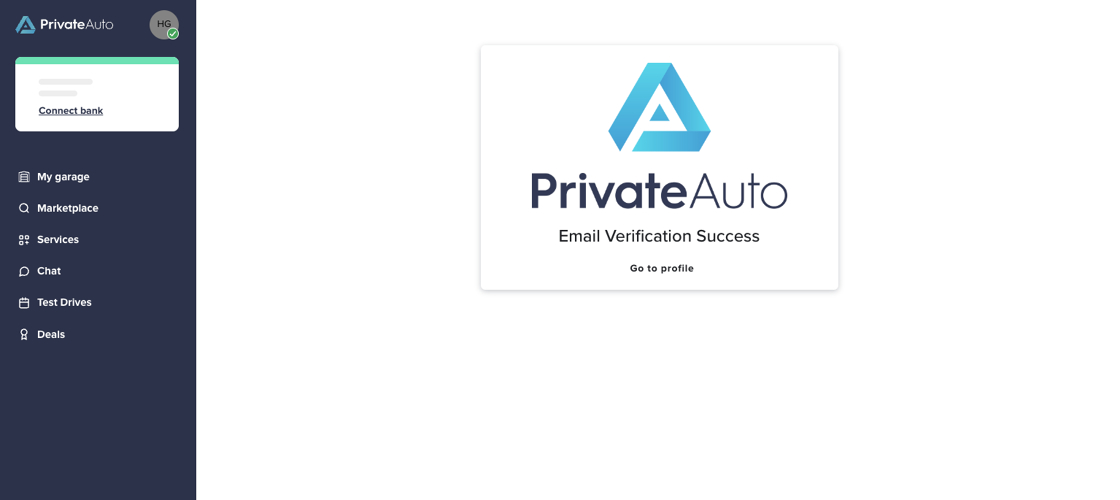 5. Check your inbox for an email from support@privateauto.com titled "Verify your new PrivateAuto account" and click the "Verify Email" button within that email. Once you do, you will be redirected back to your PrivateAuto account with an "Email Verification Success" screen.