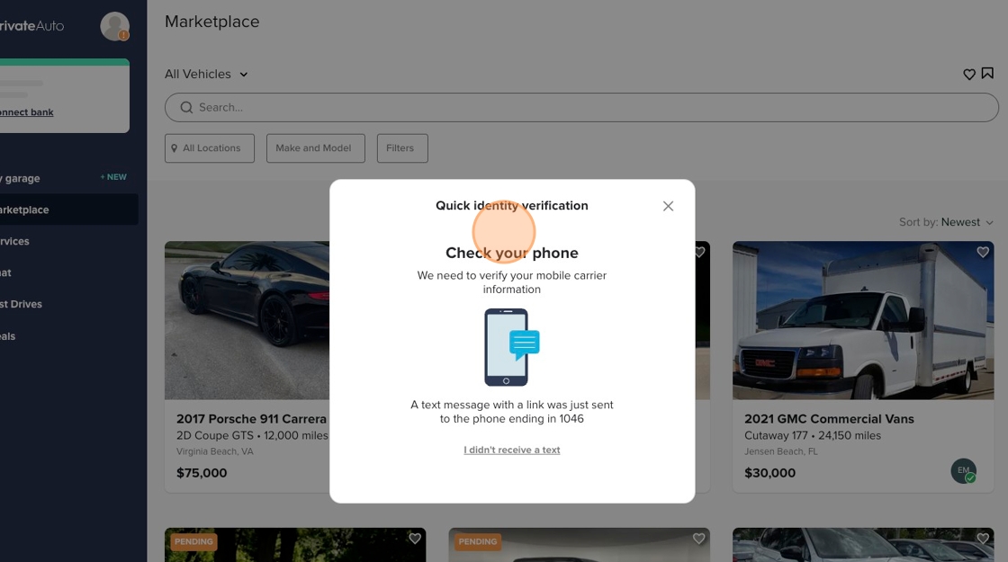 Phone number verification is just another way PrivateAuto keeps users safe. Your phone number will not be sold, called by PrivateAuto, or displayed on your profile.