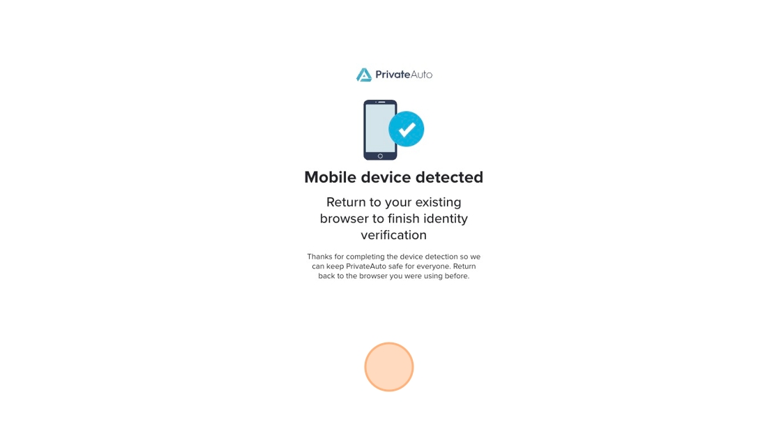 3. Once you click the link, you will receive a "Mobile device detected" message. You will need to return to your existing browser to finish the verification process.