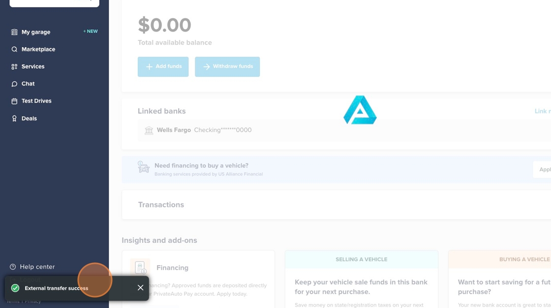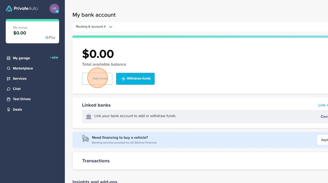 Tip: Before you can deposit money into your PrivateAuto Pay account via ACH, make sure your PrivateAuto Pay account is set up, and your bank account is linked. Click here to learn how to link your bank account.